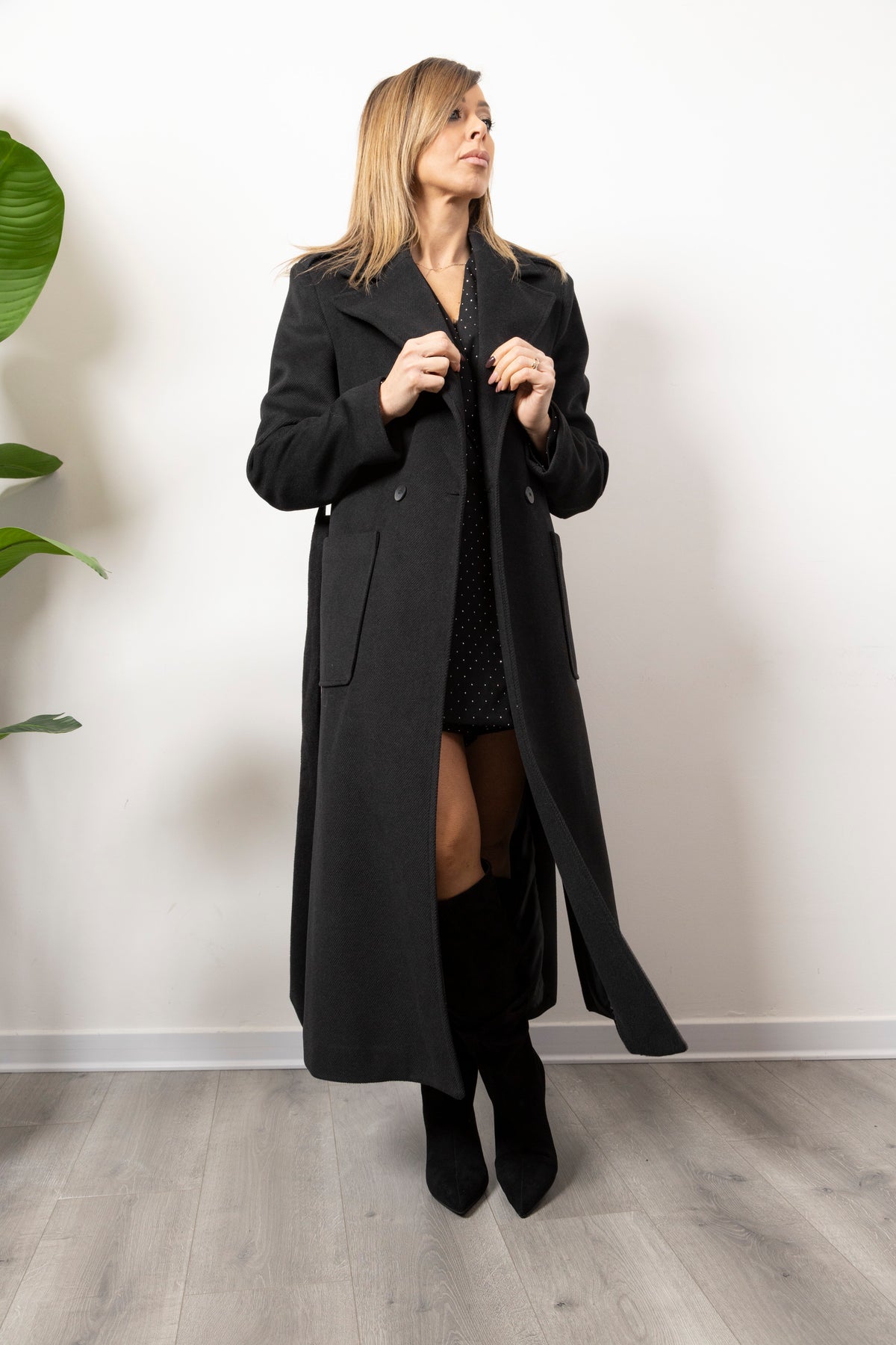 Cappotto lungo con taglio dritto e linea pulita. Bottoni frontali, rever classico e tasche laterali. Un capo elegante e intramontabile da abbinare sia a look casual che chic.