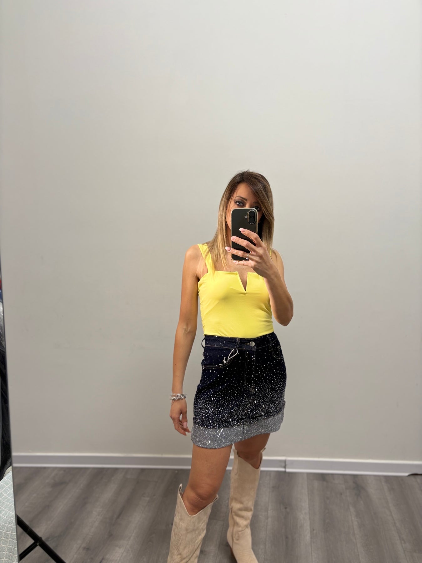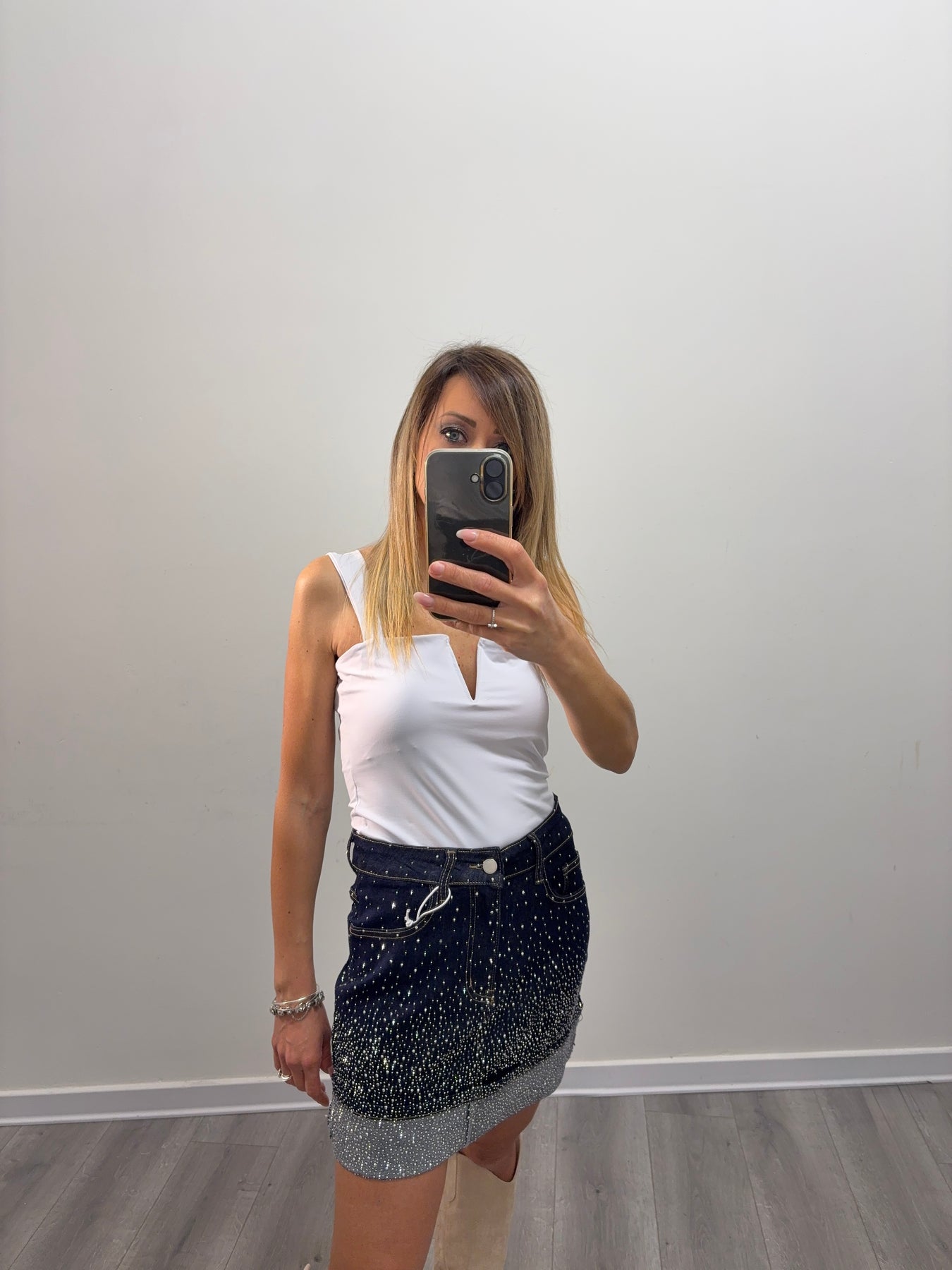 Body in tessuto elasticizzato con scollo profondo a V e spalline larghe.